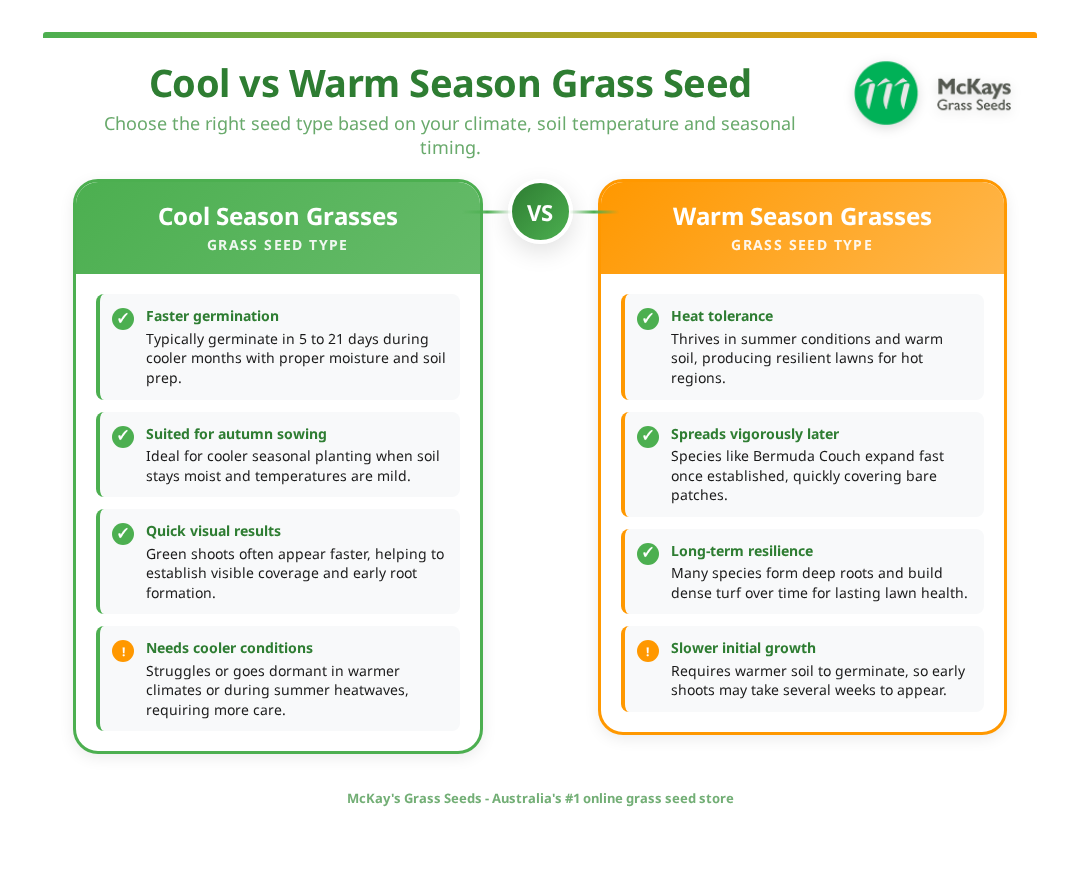Climate Tip: Check your local Bureau of Meteorology climate zone before selecting grass seed. What works in Perth may not thrive in Brisbane due to humidity and rainfall differences.