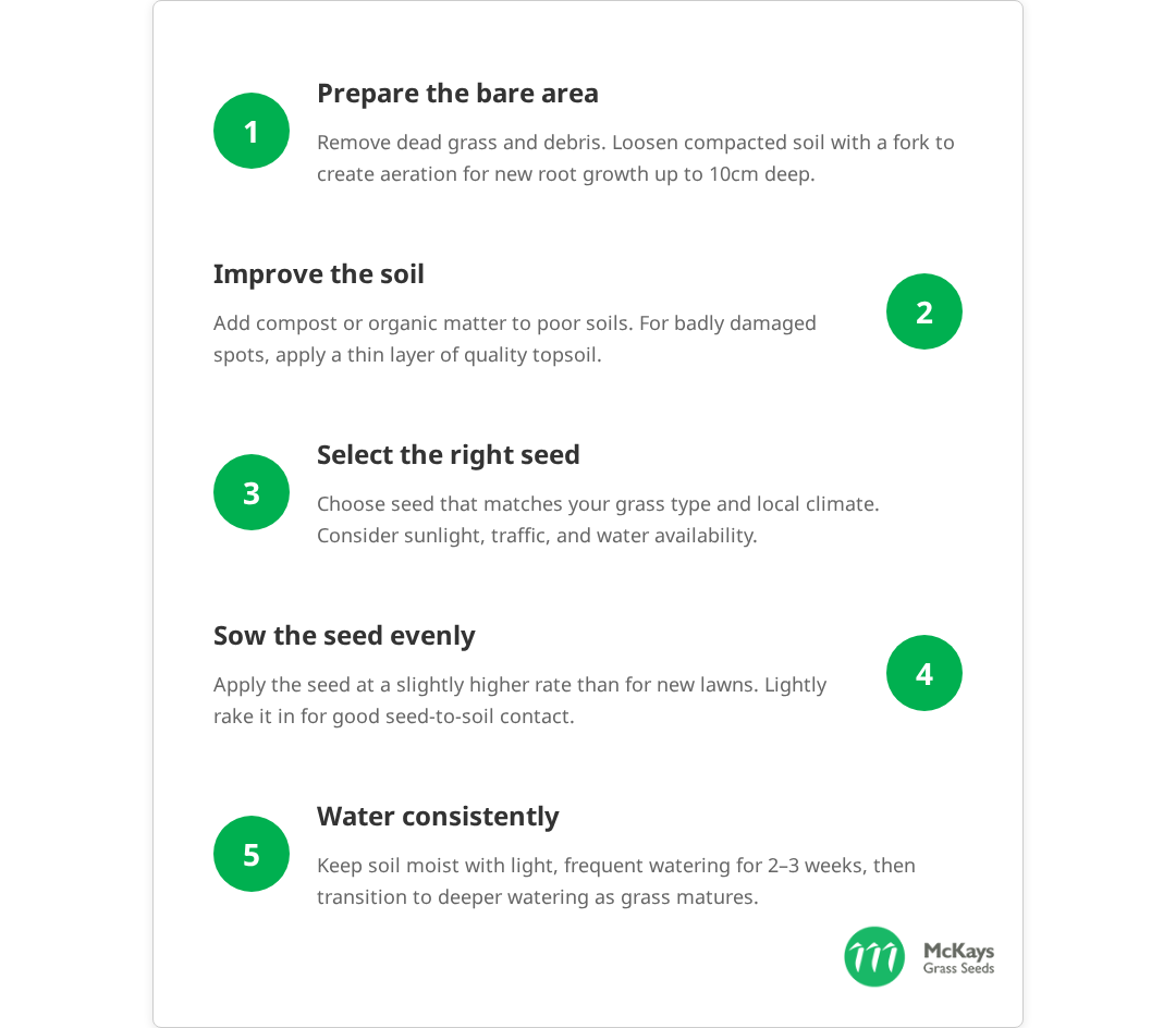 Here’s McKay’s proven method for fixing bare spots that works across Australia’s diverse climate zones: