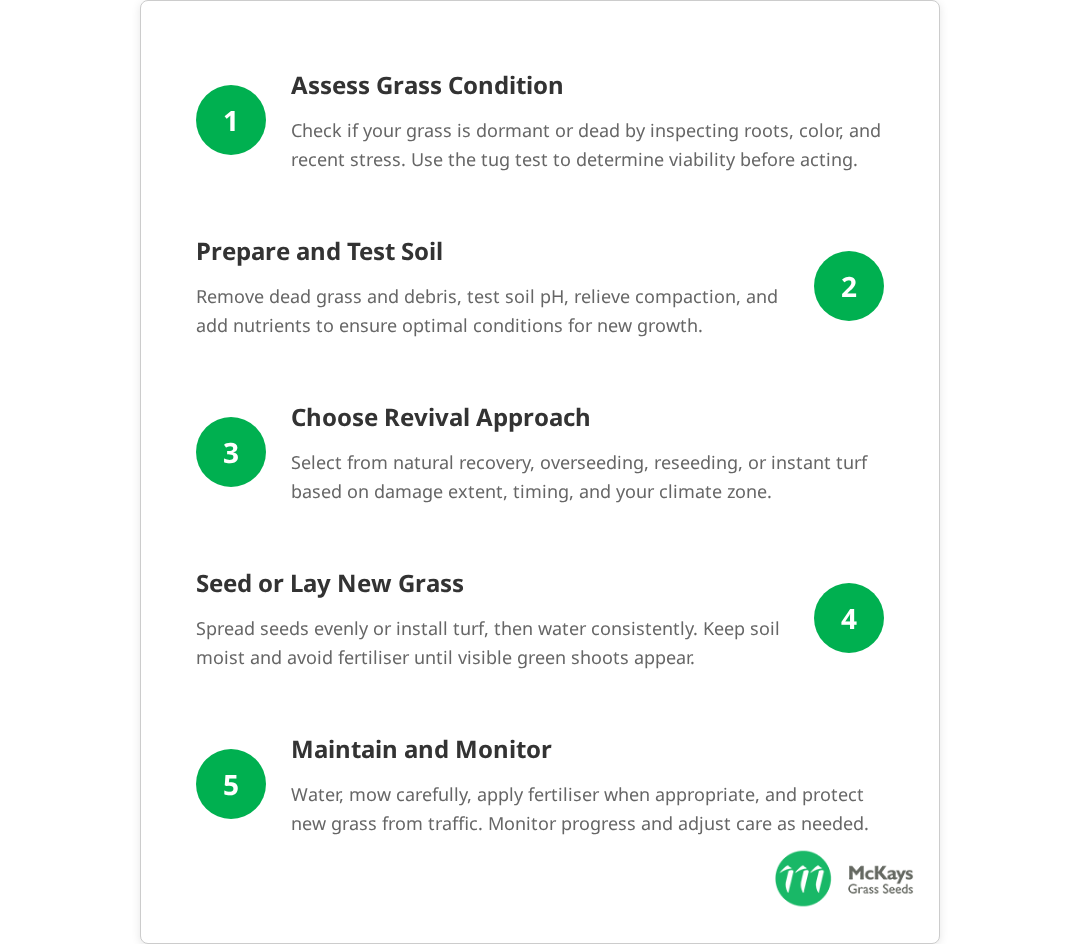 Healthy soil is fundamental to successful grass revival. Poor soil conditions are often the underlying cause of grass death and must be addressed before reseeding or laying new turf.